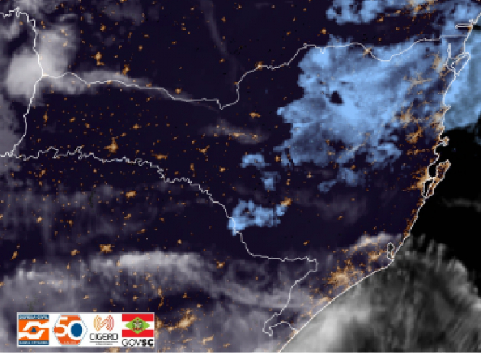 O vento sopra fraco e varia de noroeste a nordeste pelo estado, virando de quadrante sul ao longo da tarde nas áreas litorâneas, com rajadas moderadas entre 45 e 60 km/h no Grande Oeste, Planaltos, Litoral Sul e na Grd. Florianópolis. As temperaturas mínimas variam entre 21°C e 26°C no Oeste e Extremo Oeste e marcam entre 17 e 22 nas demais áreas. As máximas oscilam entre 25 e 34°C no Grande Oeste, Planalto Norte e no Litoral Norte e nas demais regiões elas variam entre 19 e 28°C.