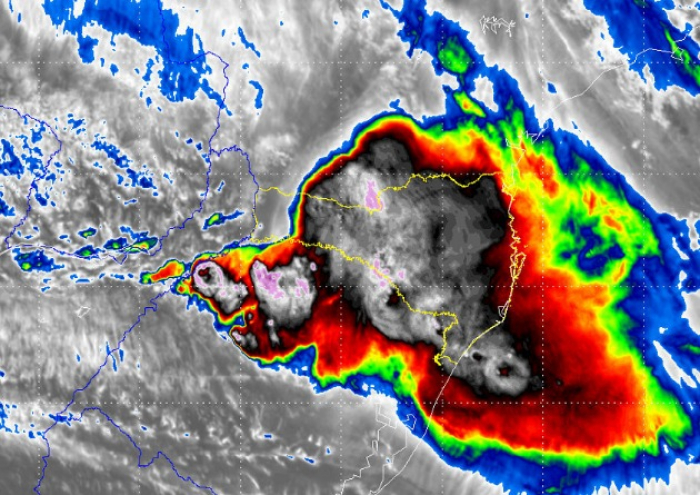 Previsão: temporais localizados em SC, com totais elevados de chuva, raios, ventania e granizo.