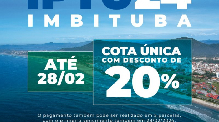O pagamento do Imposto Predial e Territorial Urbano de Imbituba, exercício 2024, já está disponível no site da prefeitura. Basta que o contribuinte navegue pelo endereço eletrônico www.imbituba.sc.gov.br e acesse o banner “GUIA DE IPTU” (na tela principal).