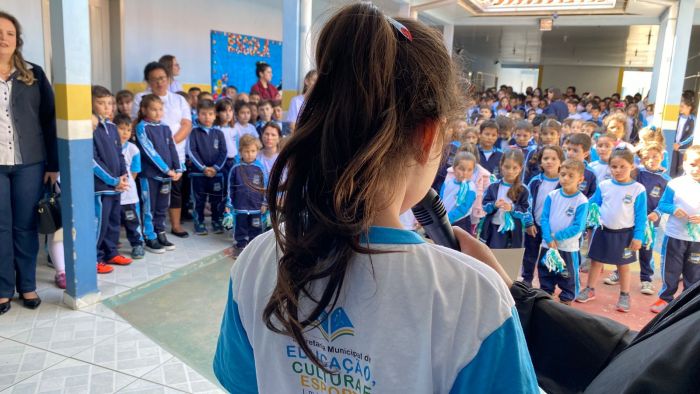 O prefeito e autoridades municipais participaram das solenidades na Escola Municipal Professora Berlaminda de Souza Pires, no bairro Campestre, e a Escola Básica Municipal José Vanderlei Mayer, em Vila Nova Alvorada.