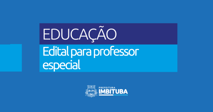 A Prefeitura de Imbituba, por meio da Secretaria Municipal de Educação, Esporte e Juventude e da Comissão Especial de Recrutamento e Seleção de Pessoal (CERSP), publicou o EDITAL Nº 07/2025 para contratação de professores de Educação Especial em caráter temporário.
