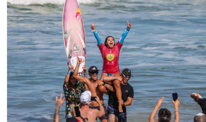 Em um domingo (24) de boas ondas na Praia da Ferrugem, a surfista, que tem 18 anos, derrotou três concorrentes para faturar o título da competição, incluindo a jovem Isabelle Nalu, de 15, na final.
