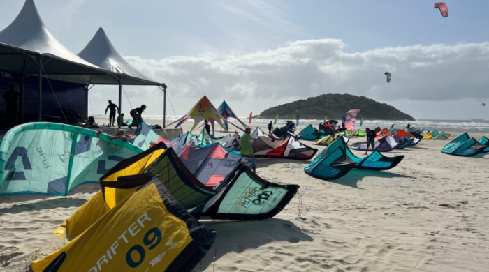 A Praia de Ibiraquera, um dos destinos mais cobiçados pelos amantes do kitesurf no Brasil, está recebendo nesta semana a elite do kitesurf e wingfoil mundiais.