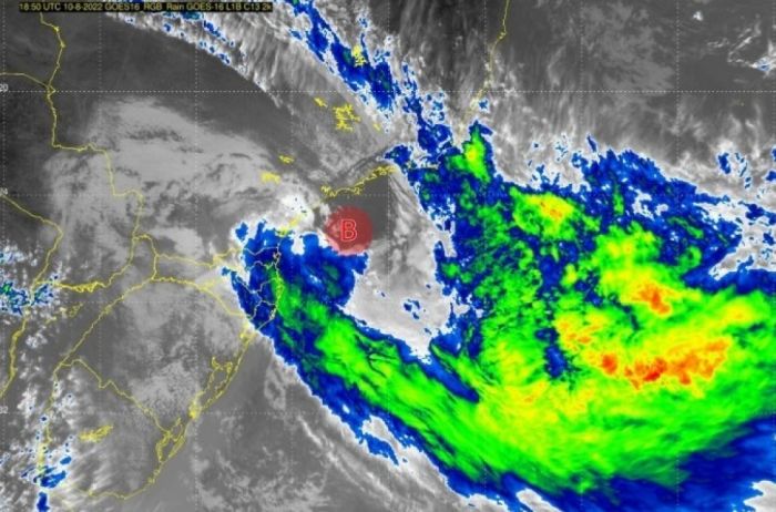 A imagem de satélite, do final da tarde desta quarta-feira, mostra o centro do ciclone já se encontra no oceano. O ciclone está próximo ao Litoral Sul de São Paulo.
