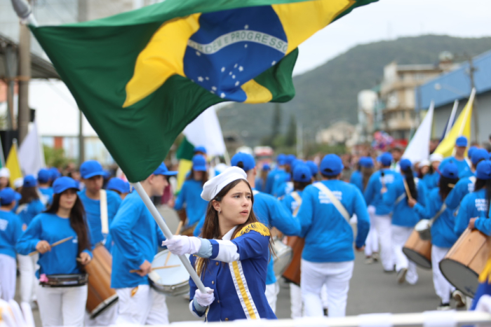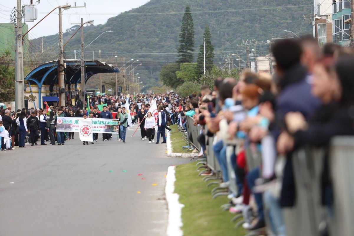 Na sequência, a APAE e a Fanfarra Municipal, abriram caminho para as escolas do município. Foram 66 entidades, entre creches, escolas municipais, estaduais e particulares, associações culturais e comunitárias, que trouxeram suas fanfarras, com apresentações e manifestações culturais, encantando a todos.