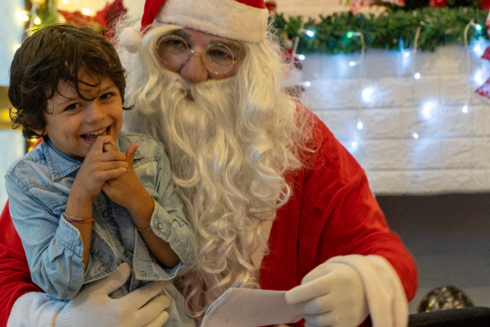 Uma noite feliz! O sorriso no rosto do Samuel Caetano Enriconi é de quem entregou a cartinha para o Papai Noel pela primeira vez. “Adorei conhecer ele”, conta o pequeno de 4 anos.