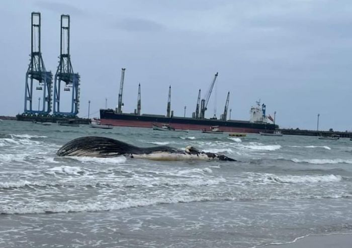 O animal, adulto, apareceu na Praia do Porto no último fim de semana. A causa da morte só poderá ser divulgada após a necropsia. O mamífero tinha 14 metros de comprimento e, aproximadamente, 10 toneladas de peso.