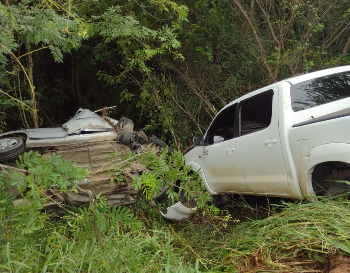 Ambos os veículos após a colisão saíram da pista caindo em uma ribanceira.