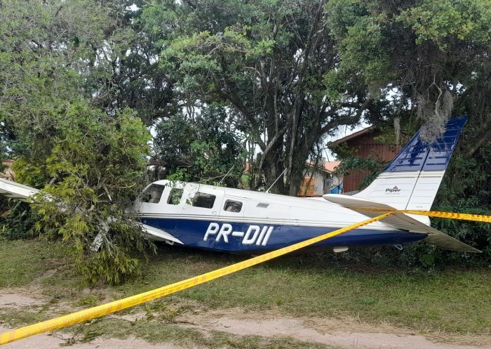 Um avião monomotor Piper Saratoga, com capacidade para 7 passageiros, colidiu com árvores, em Imbituba, ao tentar efetuar um pouso programado na pista do aeródromo onde está localizada a escola de paraquedismo SkyZimba, no bairro Arroio.