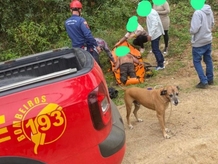 A vítima foi resgatada. Ele estava desidratado, consciente, mas desorientado, com escoriações, edema na face e relatando dores no braço esquerdo.