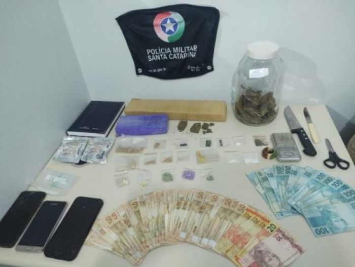 A PM apreendeu ainda R$ 2.640 em dinheiro, balança de precisão, anotações e três celulares. Os homens presos, drogas e objetos encontrados foram encaminhados para a DPCo de Imbituba.