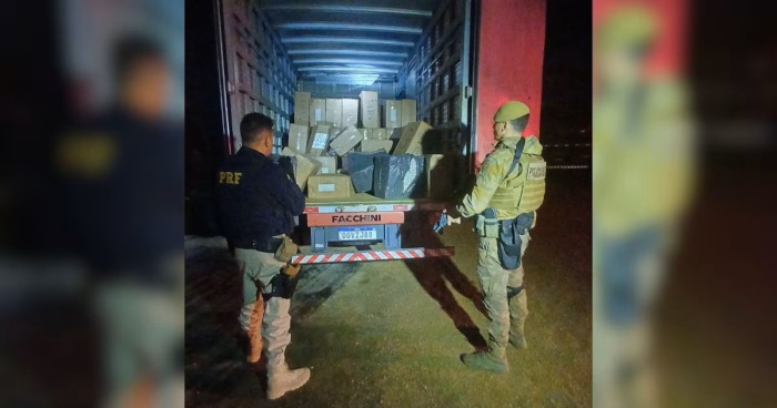 Ao verificar a carga, foram encontradas cerca de 120 caixas contendo 50 pacotes de cigarros cada.