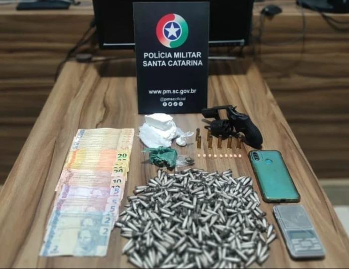 Foram apreendidos na ação, 481 pinos de cocaína, 148 g de cocaína não fracionada, 17,6 g de maconha, 9 comprimidos de ecstasy, R$ 1.836,00 em dinheiro, 1 balança de precisão, anotações de tráfico, 1 revólver calibre 357 e 7 munições do mesmo calibre.