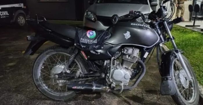 O suspeito foi encaminhado à Delegacia de Polícia Civil com a motocicleta apreendido para realização dos procedimentos