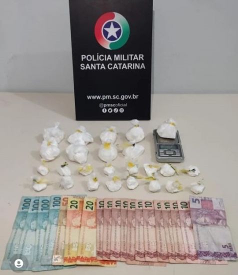 Na casa do suspeito foram encontradas mais 273 gramas de cocaína embaladas em diversas "buchas", uma balança de precisão e R$ 605 em dinheiro, além do aparelho celular pessoal do suspeito preso em flagrante. Ele foi levado pelos policiais para a Delegacia de Polícia Civil de Imbituba, junto com a droga e demais materiais apreendidos.