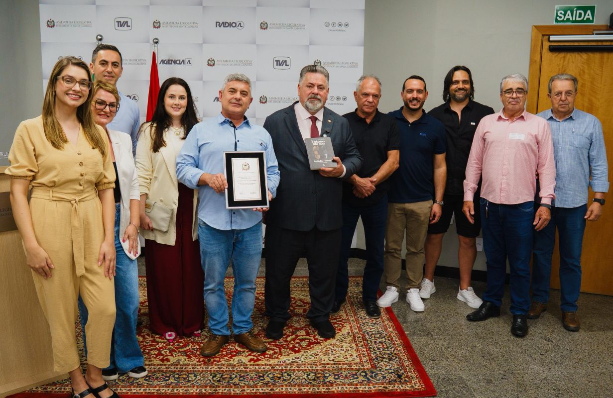 O reconhecimento à trajetória de Luiz Gonzaga Carvalho, o Zaga da INKOR, marcou a tarde desta terça-feira (30) na Assembleia Legislativa de Santa Catarina (ALESC). O empresário recebeu uma menção honrosa pelo lançamento de sua biografia “Do chinelo ao sucesso: a máquina não para”. A homenagem foi proposta pelo deputado estadual Sérgio Motta (Republicanos).