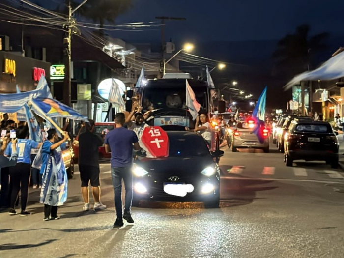 Após uma carreata até o centro, Junior de Abreu discursou para seus eleitores na praça central de Garopaba, agradecendo o apoio: