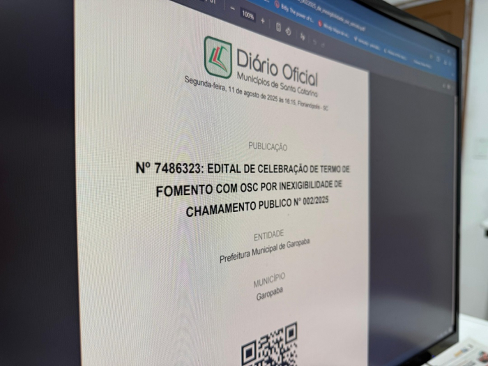 A Prefeitura de Garopaba, por meio da Secretaria de Administração, publicou nesta segunda-feira (11) o Edital nº 002/2025, que trata da celebração de Termos de Fomento com Organizações da Sociedade Civil (OSCs) beneficiadas por emendas previstas na Lei Orçamentária Anual (LOA) nº 2.660/2024 e suas atualizações. O objetivo é apoiar projetos comunitários nas áreas de educação, saúde, assistência social, cultura e esporte, que acontecem nos bairros e para os moradores do município.