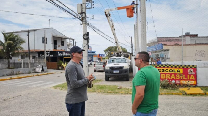 Na manhã desta quarta-feira (27), o prefeito interino de Imbituba, Deivid Rafael Aquino, esteve acompanhando a instalação da iluminação pública na quadra de esportes de Nova Brasília, próxima ao Centro Multiuso da Associação de Moradores de Nova Brasília.