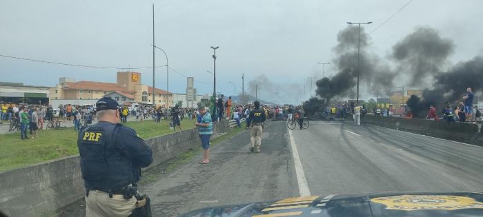 Em Tubarão, manifestantes chegaram a queimar pneus no último domingo. A PRF explica, ainda, que em todos os pontos os policiais rodoviários federais negociam a liberação das vias.