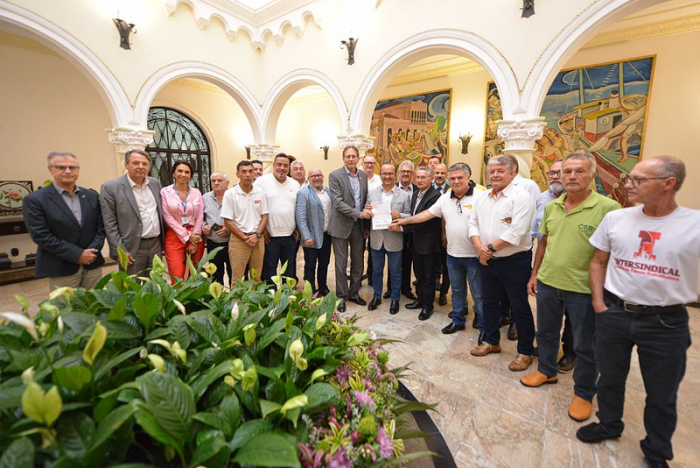 A entrega foi realizada pelo presidente da Fiesc, Mario Cezar de Aguiar, e pelo líder das negociações por parte dos trabalhadores, Ivo Castanheira.