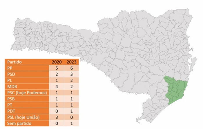 Em outras oito, os titulares permanecem os mesmos, mas filiados à partidos diferentes. PP, PSD, PL e PDT cresceram, enquanto MDB e PSL (hoje União) perderam representação.