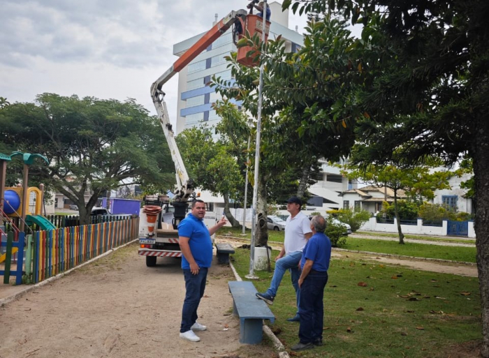 Rui complementa ressaltando que Imbituba está atualizando sua iluminação pública por LED, “aprimorando a qualidade da iluminação, mas também aumentando a segurança dos munícipes, em especial em uma de nossas principais praças, onde são realizados vários eventos e passam muitas pessoas”.