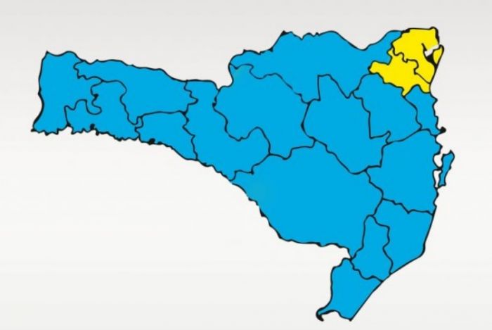 Além da nossa região, estão classificadas em azul: Alto Uruguai Catarinense, Alto Vale do Itajaí, Alto Vale do Rio do Peixe, Carbonífera, Extremo Oeste, Extremo Sul Catarinense, Foz do Rio Itajaí, Grande Florianópolis, Médio Vale do Itajaí, Meio-Oeste, Oeste, Planalto Norte, Serra Catarinense e Xanxerê. Somente Vale do Itapocu e Nordeste estão na cor amarela, indicador do nível alto.