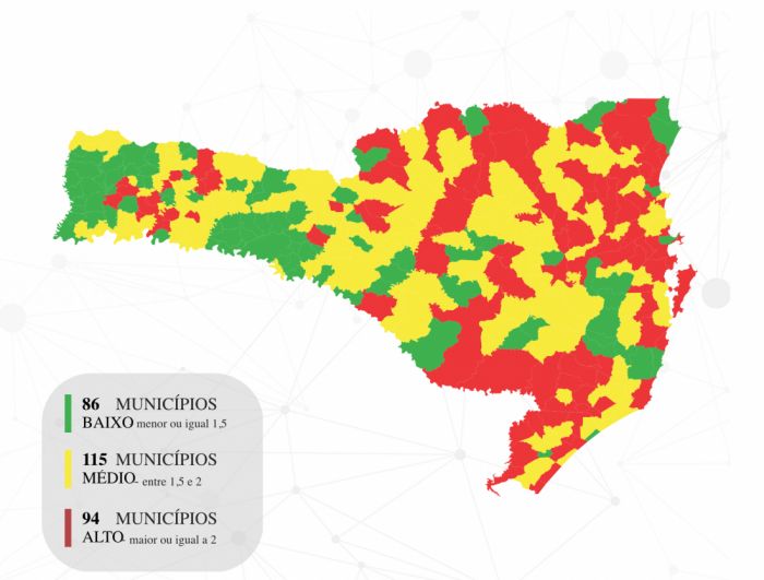 Dos 295 municípios catarinenses, 115 registram risco médio e precisam tomar os devidos cuidados para que a situação não se intensifique.