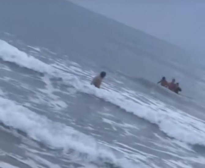 Neste momento os policiais percebendo a gravidade da situação retiraram todos os equipamentos de segurança individual e entraram no mar para evitar o afogamento do jovem.