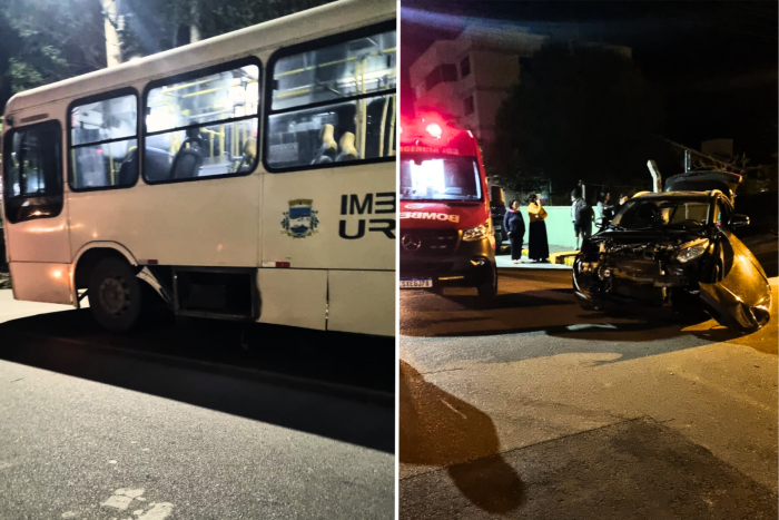Foto Montagem: Portal AHora Um acidente envolvendo um automóvel Hyundai HR-V e um ônibus do transporte coletivo urbano deixou um homem ferido no início da noite desta segunda-feira (11), em Imbituba.