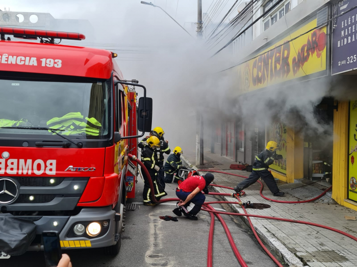 Os funcionários da filial da Rua Irineu Bornhausen chegavam para o trabalho quando perceberam o fogo que se alastrou rapidamente entre as mercadorias.