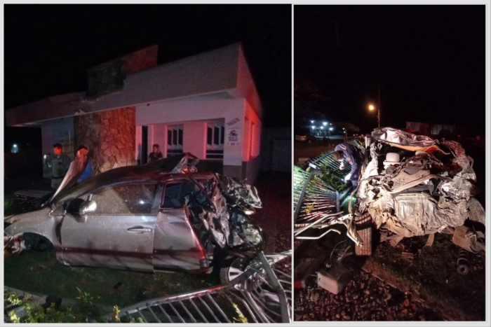 Segundo informações da Polícia Militar Rodoviária (PMRv), o Honda Civic envolvido no acidente atingiu o portão de uma casa e um poste na margem da SC-370, no bairro São Martinho.