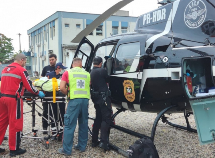 O helicóptero do Serviço Aeromédico do Sul de Santa Catarina (Sarasul) também foi acionado, além do Corpo de Bombeiros e da unidade do Serviço de Atendimento Móvel de Urgência (Samu).