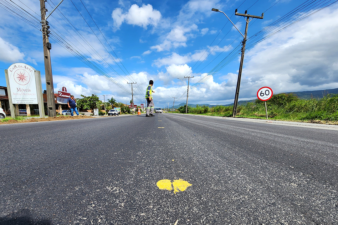 Após 20 dias de trabalho intenso, o recapeamento asfáltico nas obras da Rodovia Estadual Abílio Manoel de Lima, a SC-434 foi concluído. Ao todo, foram 11 quilômetros de fresagem e de nova pavimentação. Alguns trechos também receberam reparos para nivelamento da via.