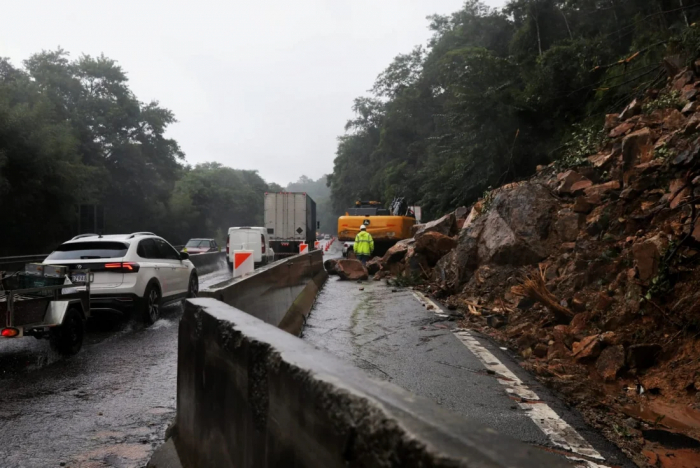 A pista da direita no sentido Norte segue sem tráfego porque as equipes continuam os trabalhos de limpeza no local, onde houve a queda da barreira. Além disso, uma cratera se abriu na pista, por isso, foi necessário esperar a chuva acalmar para fazer o conserto do trecho.
