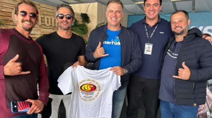 A comitiva de Imbituba conta com a presença do Secretário Municipal de Turismo, Cultura e Inovação, Jackson José Loro, e do Presidente da Associação de Surf de Imbituba (ASI), Henrique Bittencourt de Bona Neto.